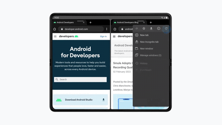 Użytkownicy Chrome prosili o więcej funkcji zwiększających produktywność na tabletach, urządzeniach składanych i telefonach, które lepiej pasowały do wydajności Chrome na komputerach. Zespół Chrome zareagował, dodając do przeglądarki Chrome funkcje wielozadaniowości.