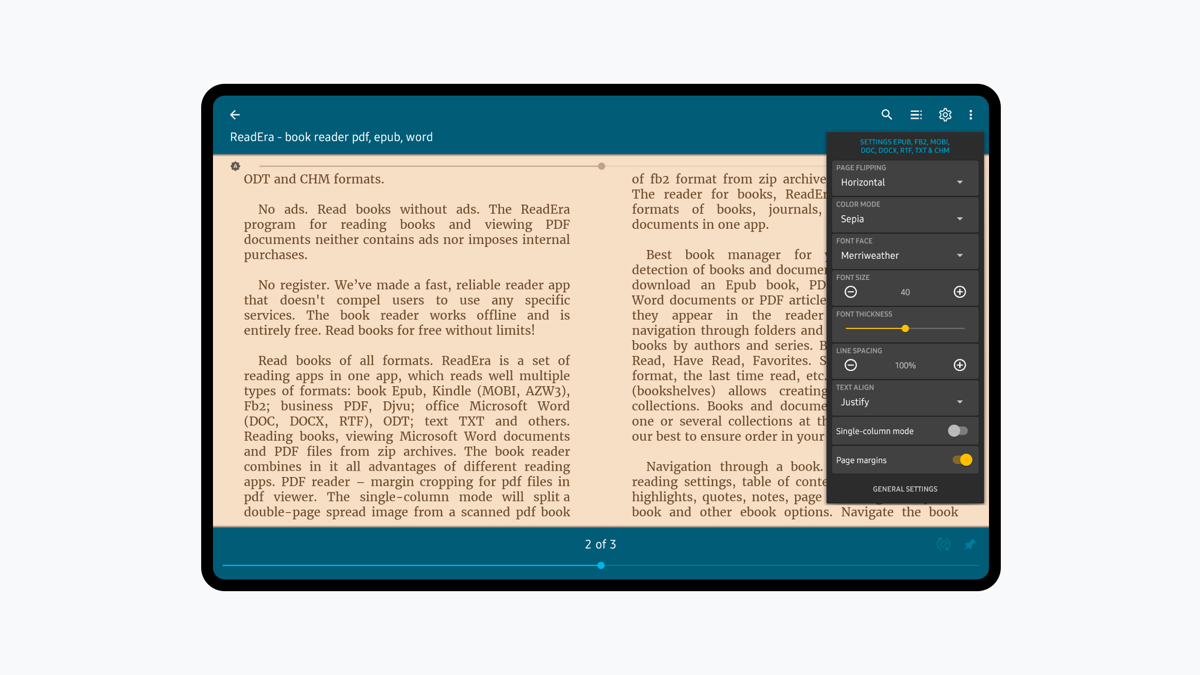 平板電腦和折疊式裝置非常適合用於閱讀。大螢幕讓閲讀者能夠自然地享受閱讀,而無需瞇著眼睛或將鼻子貼在螢幕上閱讀微小的文字。帶給使用者令人愉悅的沉浸式全螢幕閱讀體驗,或是讓他們在多視窗模式中探索相關內容,而無須合上他們愛不釋手的書籍。