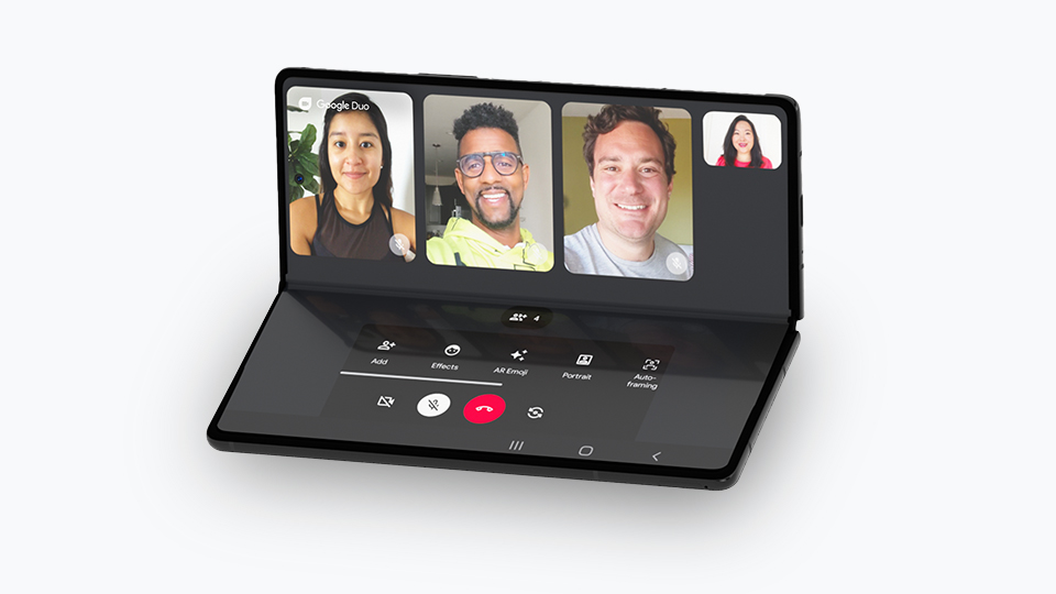 tablet, dan membuat tata letak mode di atas meja pada perangkat foldable untuk panggilan video handsfree.