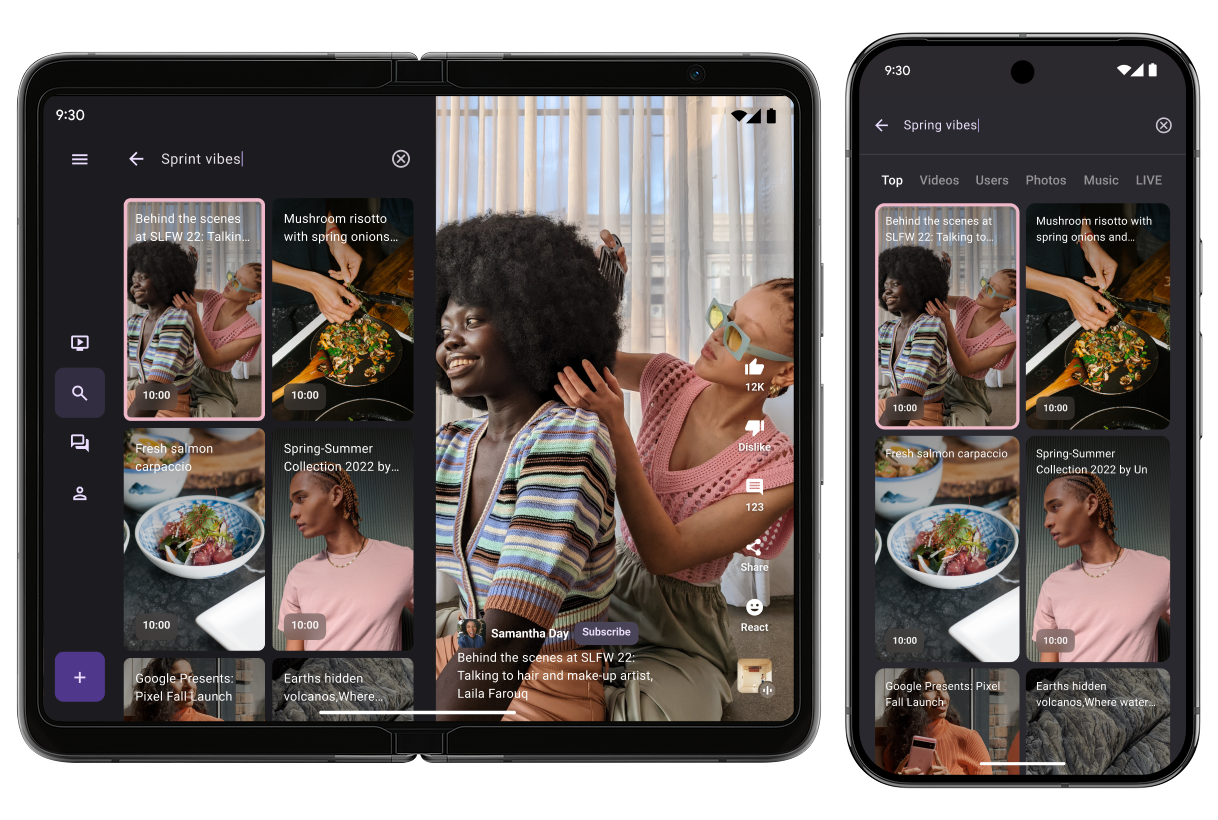 È come avere due dispositivi in uno. Usabilità del doppio dispositivo con app affiancate in scenari multi-finestra o multi-istanza. App che permettono agli utenti di effettuare ricerche mentre scrivono, eseguono ricerche durante la chat e programmano le videochiamate.
