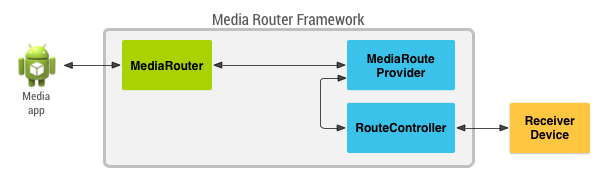 Hersteller von Wiedergabegeräten können an dem Framework teilnehmen, indem sie eine MediaRouteProvider veröffentlichen, mit der andere Anwendungen eine Verbindung zu und