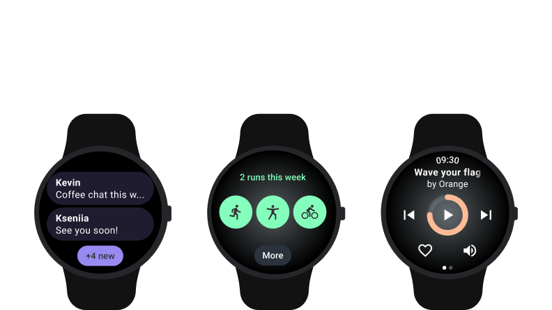 Upgrade aplikasi dan tampilan jam Wear OS Anda untuk menyertakan UI baru yang modern, ekspresif, dan sangat baik dengan desain Material 3 Expressive.
