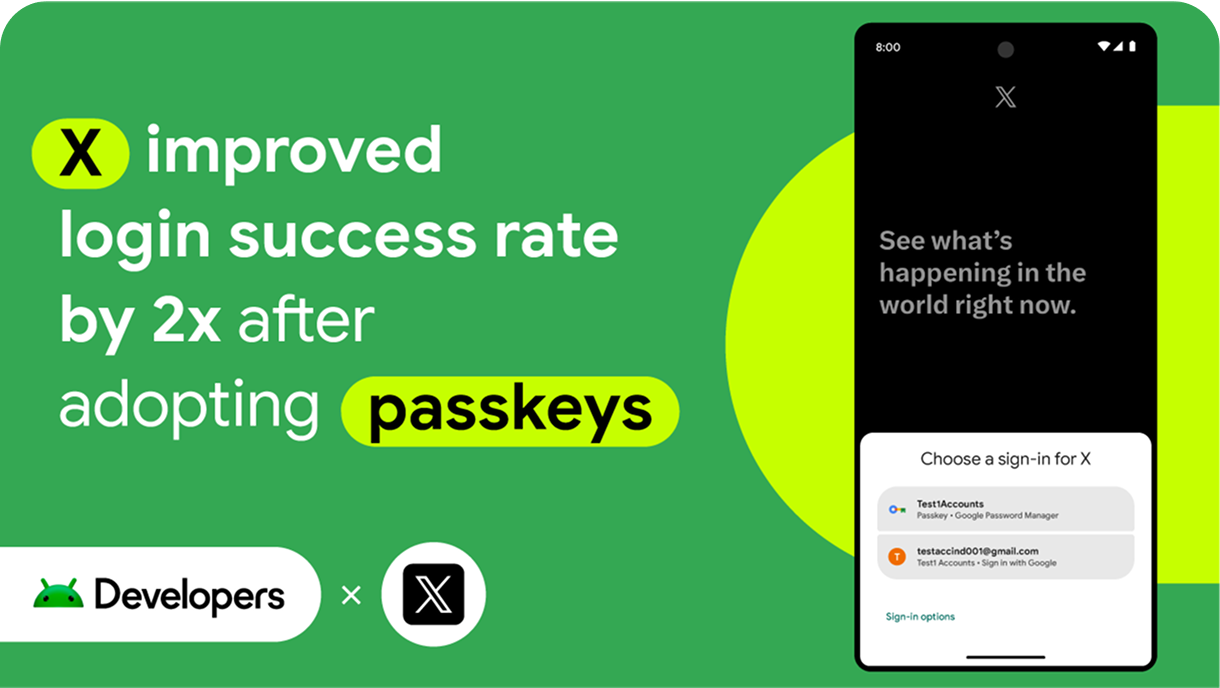 حقّقت شركة X زيادةً بمقدار الضِعف في معدّل نجاح تسجيل الدخول بعد استخدام مفاتيح المرور.