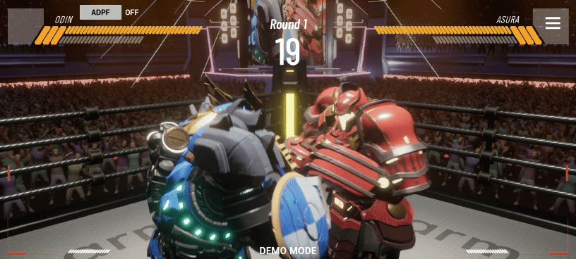 Pada gambar 3 dan 4 sebelumnya, tampilan robot yang sama dapat dilihat secara berdampingan. Jika dilihat lebih dekat, setelan grafis yang disesuaikan dengan menggunakan ADPF akan terlihat. Perhatikan lantai ring, bahu robot, tali ring, dan kerumunan? Semuanya tampaknya memiliki kualitas yang sedikit lebih rendah, yang dilakukan dengan menggunakan ADPF.