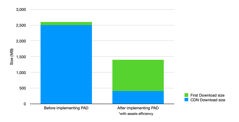 ডেভসিস্টাররা শনাক্ত করেছে যে বৃহৎ CDN ডাউনলোডের ফলে প্রথমবার ব্যবহারকারীর অভিজ্ঞতা নেতিবাচক হয়েছে, যা ব্যবহারকারীর মন্থনও বাড়িয়েছে। ব্যবহারকারীরা প্রথমবার গেমটি খেলার আগে ডাউনলোড স্ক্রিনটি দেখার জন্য দীর্ঘ সময় ব্যয় করছিলেন।