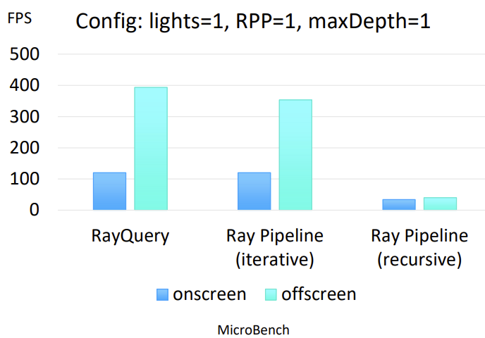 No entanto, os pipelines de raios ofereciam uma solução mais escalonável, permitindo que o Vulkan gerencie a travessia e a interseção de raios. Embora as consultas de raios fossem inicialmente um pouco mais rápidas em cenas mais simples, os pipelines de raios demonstraram melhor escalonabilidade e desempenho para aplicativos de ray tracing mais complexos, tornando-os uma escolha superior para desenvolvimento de longo prazo e demandas visuais complexas. Escolhemos equilibrar a facilidade do desenvolvimento inicial com a escalabilidade futura e o desempenho geral, com foco na integridade visual de longo prazo do jogo.