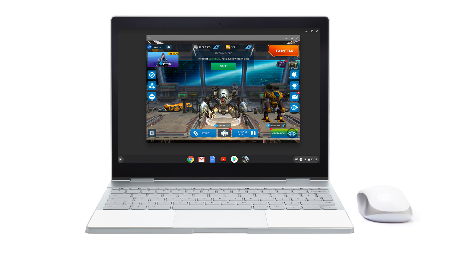 Lançado em 2014, o War Robots foi originalmente projetado para os primeiros dispositivos Android, com movimento baseado no touchpad e sem entrada de mouse. A equipe da Pixonic, composta por gamers ávidos, reconheceu que o app precisava de algumas modificações para oferecer uma ótima experiência do usuário em uma maior variedade de dispositivos, como laptops e tablets. O War robots já podia ser jogado em qualquer dispositivo Android porque os Chromebooks executam uma versão completa do framework do Android em um contêiner. Com mais alguns ajustes no código, a Pixonic conseguiu os benefícios do ChromeOS recursos completos.