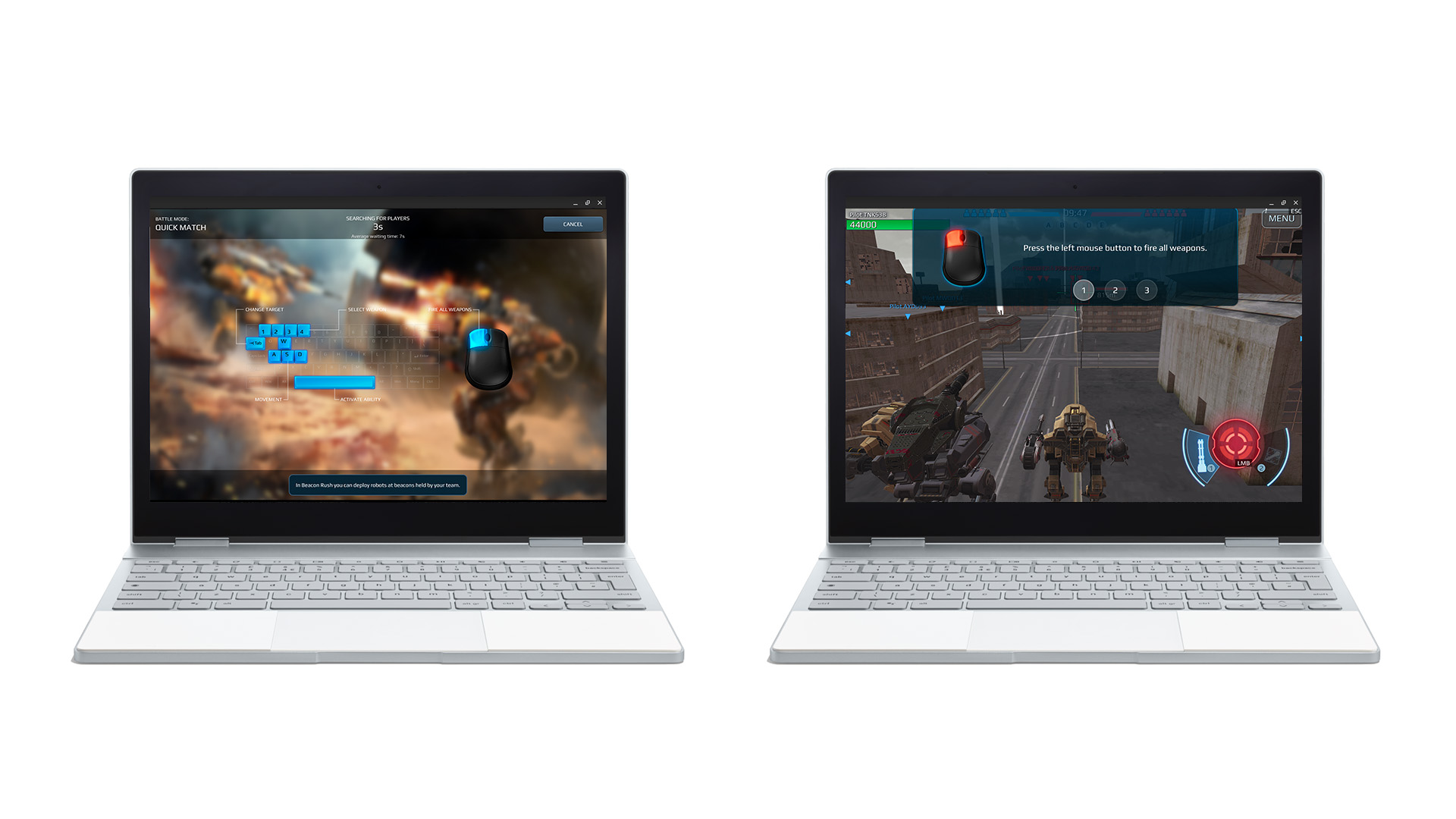 2014 yılında çıkan War Robots ilk olarak Android'in ilk nesil cihazlar için yalnızca dokunmatik alan tabanlı hareketlere sahip, fare girişi yok. İlgili içeriği oluşturmak için kullanılan Oyun tutkunu olan Pixonic ekibi, uygulamada birkaç değişiklik gerektiğini fark etti. daha geniş bir cihaz yelpazesinde mükemmel bir kullanıcı deneyimi sunmak için bilgisayar ve tablet gibi işlemler yapabilir. War Robots zaten tüm Android cihazlarda oynanabiliyordu Chromebook'lar Android çerçevesinin tam sürümünü çalıştırdığından olabilir. Pixonic, birkaç kodlama çalışmasıyla daha hızlı veya ChromeOS'in avantajlarından tüm özellikleri sunar.