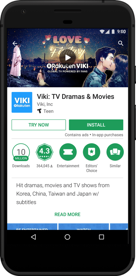Viki हमेशा टेक्नोलॉजी के मामले में सबसे आगे रहा है. यह उभरते हुए बाज़ारों में Android का इस्तेमाल करने वाले लोगों की बढ़ती हुई ज़रूरतों को पूरा करने के लिए, लगातार नए-नए तरीके अपनाता रहता है. Viki ने देखा कि उसके नेटिव ऐप्लिकेशन में लोगों की दिलचस्पी काफ़ी ज़्यादा है. इसलिए, उसने एक इंस्टैंट ऐप्लिकेशन बनाया, ताकि वह अपनी पूरी ऑडियंस को ऐसा ही शानदार अनुभव दे सके. खास तौर पर, Google Search से आने वाले उपयोगकर्ताओं को.