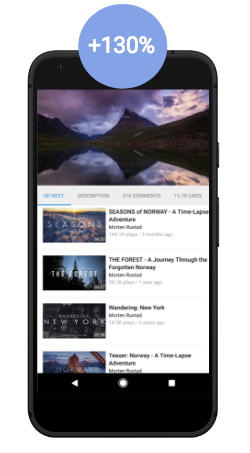Vimeo بالاترین تعامل را در برنامه نصب شده بومی خود مشاهده می کند، بنابراین آنها می خواستند برنامه های فوری اندروید را پیاده سازی کنند تا کاربران بتوانند با یک ضربه وارد تجربه برنامه بومی همهجانبه خود شوند.