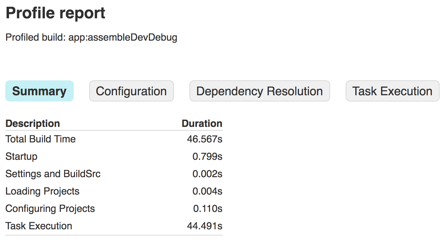 gradlew --profile --offline --rerun-tasks assembleFlavorDebug