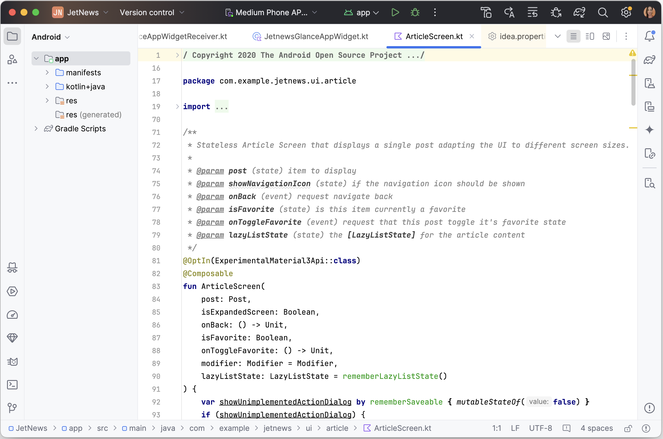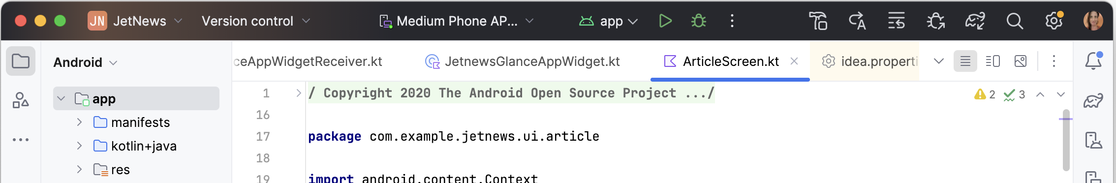 Android 스튜디오 Ladybug 기능 출시에서는 IntelliJ 플랫폼 2024.2 업데이트의 새 UI를 기본 테마로 도입합니다. 새로운 UI는 간소화된 디자인과 향상된 기능을 제공하므로 초보자와 경험 많은 개발자 모두 워크플로를 더 효율적으로 탐색할 수 있습니다.