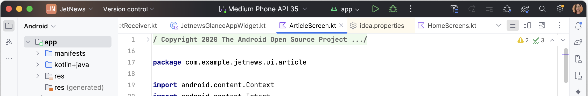 การอัปเดตฟีเจอร์ใหม่ของ Android Studio Ladybug จะใช้ UI ใหม่จากการอัปเดตแพลตฟอร์ม IntelliJ 2024.2 เป็นธีมเริ่มต้น UI ใหม่มาพร้อมการออกแบบที่เรียบง่ายและฟีเจอร์ที่ปรับปรุงใหม่ ซึ่งช่วยให้นักพัฒนาซอฟต์แวร์ทั้งมือใหม่และมือโปรไปยังส่วนต่างๆ ของเวิร์กโฟลว์ได้อย่างมีประสิทธิภาพมากขึ้น