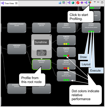 • Wenn die Stammansicht einer Hierarchie eine rote Messungsphase, eine rote Layoutphase und eine gelbe Zeichenphase enthält, ist dies typisch, da sie allen anderen Ansichten übergeordnet ist und ihr Layout erst fertig ist, wenn die untergeordneten Elemente fertig sind.