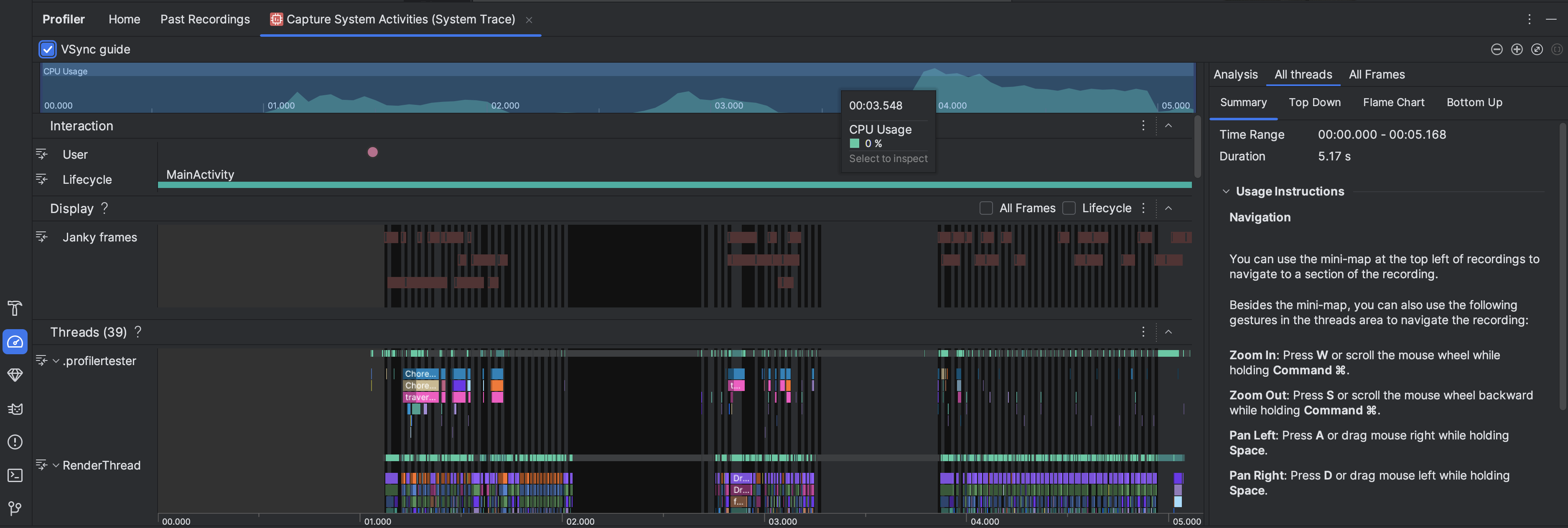 Tip: When inspecting the Threads timeline, the following shortcuts are available: