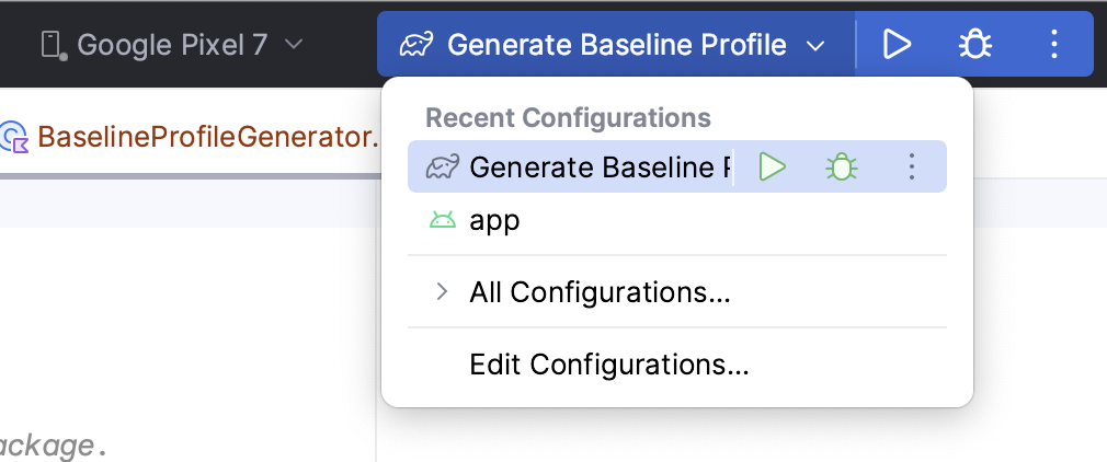 Android Studio Iguana से, अपने ऐप्लिकेशन के लिए बेसलाइन प्रोफ़ाइलें जनरेट की जा सकती हैं. इसके लिए, नए मॉड्यूल विज़र्ड (फ़ाइल > नया > नया मॉड्यूल) में बेसलाइन प्रोफ़ाइल जनरेटर टेंप्लेट का इस्तेमाल करें.