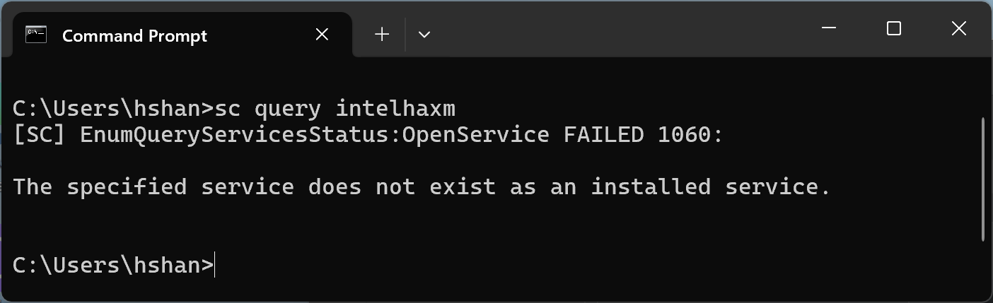 sc query intelhaxm