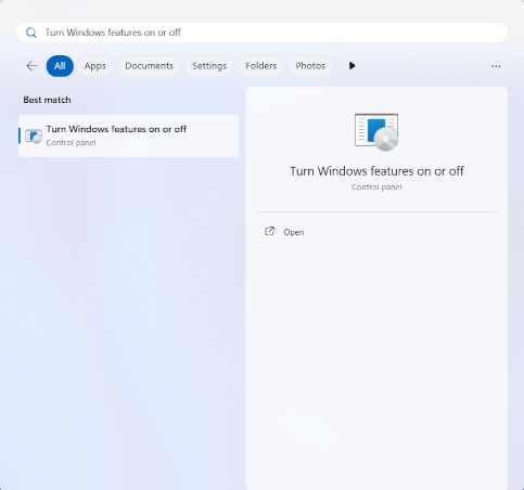 Dans la barre de recherche, saisissez Activer ou désactiver des fonctionnalités Windows.