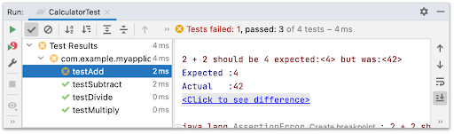 Android Studio is designed to make testing simple. It contains many features to simplify how you create, run, and analyze tests. You can set up tests that run on your local machine or instrumented tests that run on a device. You can easily run a single test or a specific group of tests on one or more devices. The test results are shown directly inside Android Studio.