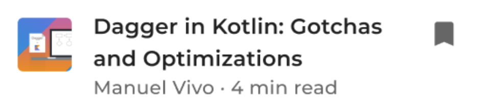 如為導航目的地或畫面,ViewModel 可與存放區或用途類別搭配使用,藉此取得資料並轉換為 UI 狀態,同時整合可能會造成狀態異動的事件效果。前述的個案研究包含報導清單,每個報導都有一個標題、說明、來源、作者姓名、發布日期,以及是否已經加入書籤。每個報導項目的 UI 外觀看起來會是這樣: