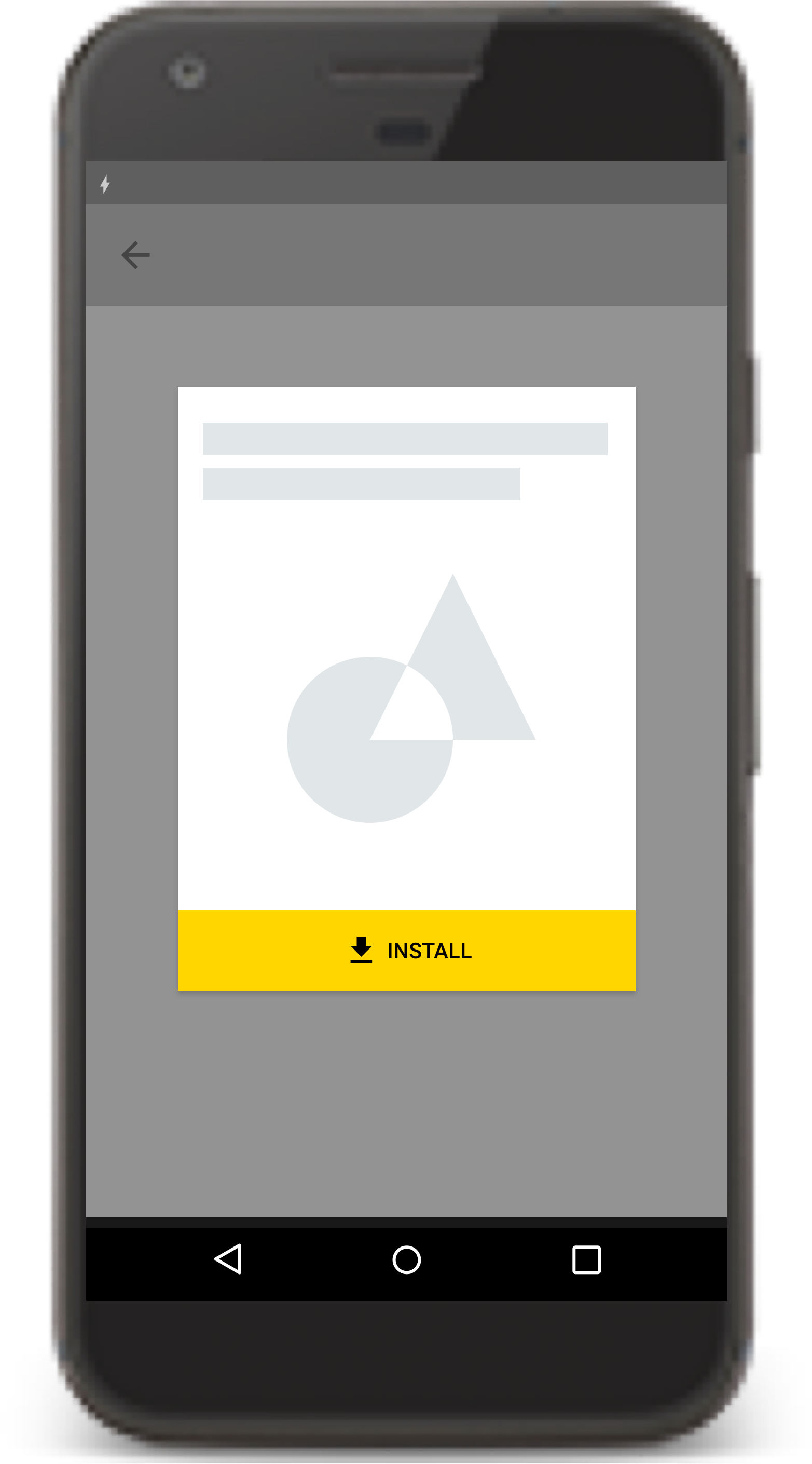 Utilisez les boutons d'installation de manière stratégique en les intégrant à l'interface utilisateur de votre application. Utilisez l'icône Material Design de téléchargement d'application et le libellé INSTALLER pour le bouton d'installation.