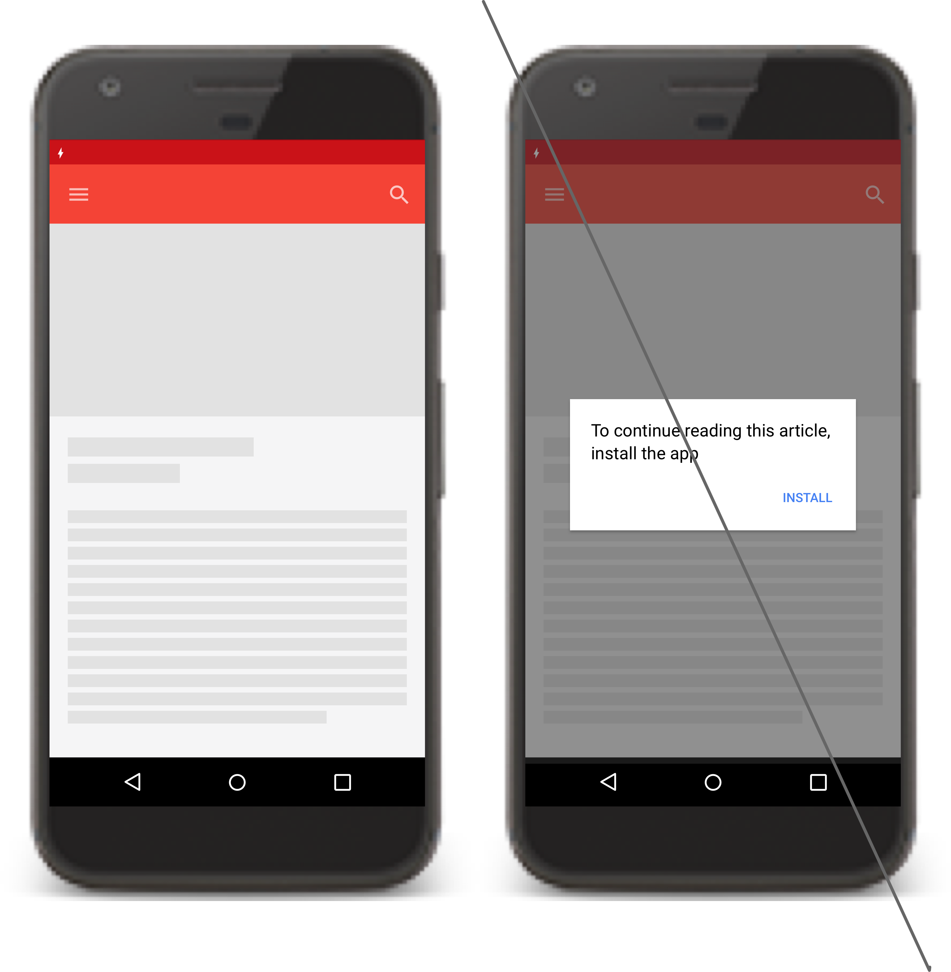 उपयोगकर्ताओं से ऐप्लिकेशन इंस्टॉल करने के लिए न कहें, ताकि वे अपनी पसंद के मुताबिक काम कर सकें. ऐप्लिकेशन में मौजूद किसी पेज पर क्लिक करने से, कभी भी ऐप्लिकेशन इंस्टॉल करने का प्रॉम्प्ट ट्रिगर नहीं होना चाहिए.