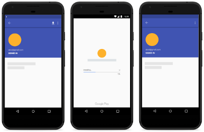 Google Play Instant มอบวิธีใหม่ให้ผู้ใช้ได้ใช้แอป แอปเหล่านี้เรียกว่า Instant App ซึ่งเป็นแอป Android ดั้งเดิม แต่จะทำงานโดยไม่ต้องติดตั้งในอุปกรณ์ โดยแต่ละแอปด่วนจะมีเวอร์ชันที่สอดคล้องกันซึ่งผู้ใช้ เลือกติดตั้งได้
