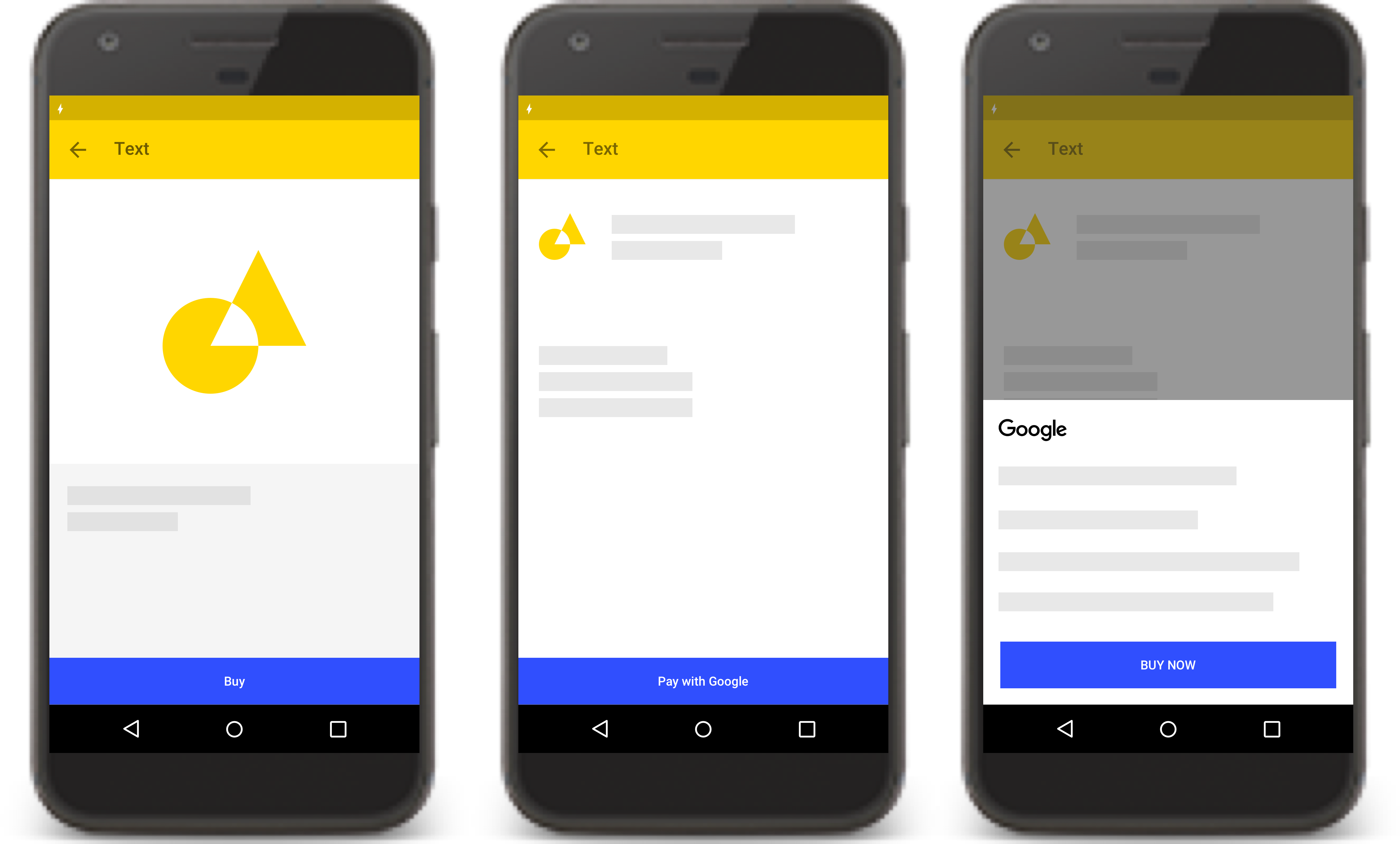 หาก Google Play Billing ไม่รองรับการซื้อใน Instant App และคุณไม่มีข้อมูลการชำระเงินของผู้ใช้ในระบบ คุณสามารถใช้ API การชำระเงินอื่นได้ เช่น Google Pay API Google Pay API ช่วยให้คุณ เสนอการชำระเงินแบบออฟไลน์โดยเฉพาะ เช่น การชำระเงินปลายทาง และจัดเก็บบัตรของขวัญใน Instant App ได้