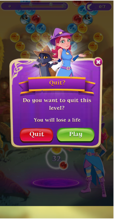 画面の下部にある Android の [戻る] ボタンを無効にしないでください。代わりに図 3 のように、[戻る] ボタンが押されたときに警告を表示し、ゲームを終了しようとしていることをプレーヤーに通知してください。確立されたナビゲーション パターンを維持することをおすすめします。