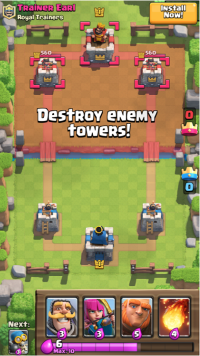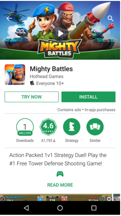 図 4 のスクリーンショットに、[インストール] ボタンの場所の例を示します。図 5 のスクリーンショットでは、プレーヤーが [インストール] ボタンをタップすることで、アプリ内でインストール エクスペリエンスが発生しています。