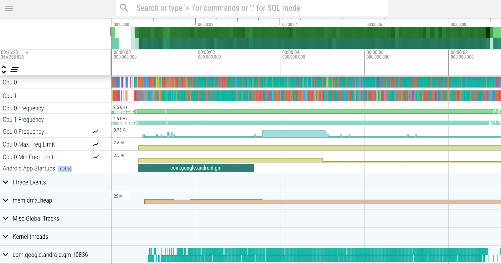 Der Messwert Android-App-Starts entspricht der Zeit bis zur ersten Anzeige, auch wenn Sie reportFullyDrawn() verwenden. Wenn Sie die Zeit bis zur vollständigen Anzeige ermitteln möchten, suchen Sie im Perfetto-Suchfeld nach reportFullyDrawn().