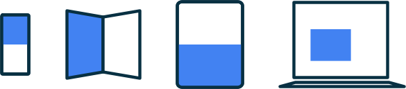 Aby obsługiwać jak najwięcej rozmiarów wyświetlacza – zarówno różnych ekranów urządzeń, jak i różnych okien aplikacji w trybie wielu okien – zaprojektuj układy aplikacji tak, aby były elastyczne i dostosowywały się do różnych rozmiarów. Elastyczne i adaptacyjne układy zapewniają optymalne wrażenia użytkownika niezależnie od rozmiaru wyświetlacza. Dzięki temu aplikacja może działać na telefonach, tabletach, urządzeniach składanych, urządzeniach z ChromeOS, w orientacji pionowej i poziomej oraz w konfiguracjach z możliwością zmiany rozmiaru wyświetlacza, takich jak tryb podzielonego ekranu i tryb okien na pulpicie.