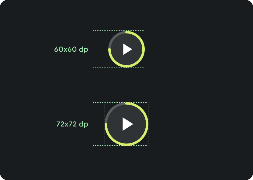- Das Mindestziel für die unteren Schaltflächen muss 48 dp (H) × 48 dp (B) betragen.
