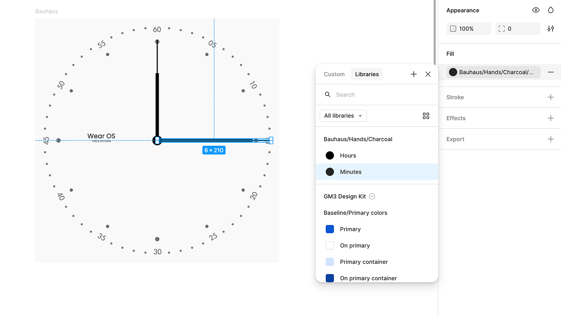 Bauhaus/Hands/Charcoal/Minutes theme to the watch face's minute