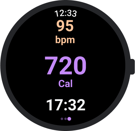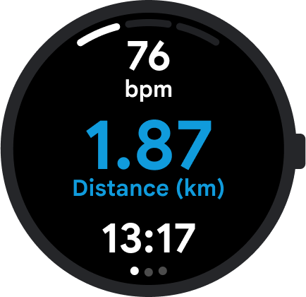 タイルやウォッチフェイスの追加機能など Wear OS の視認性の高いサーフェスを利用し、あらゆるワークアウトの指標をすぐに確認できるようにします。