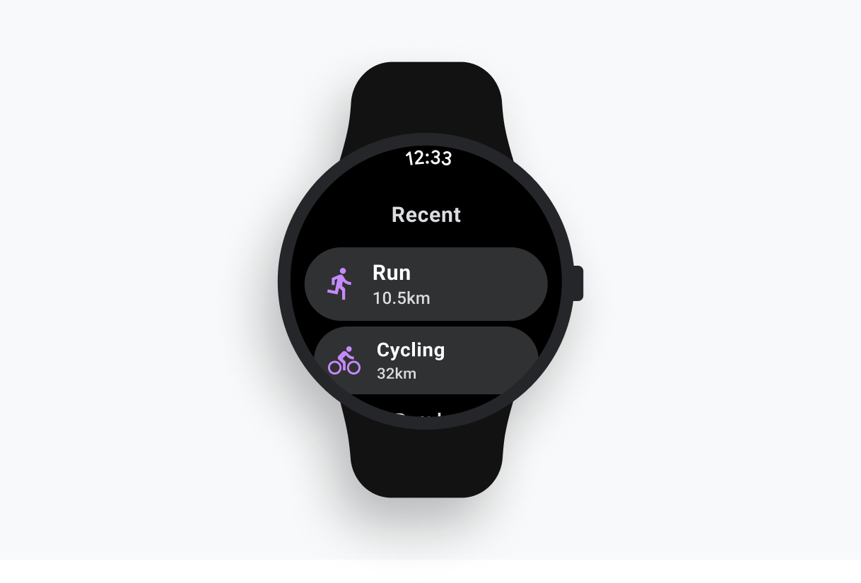 Use plataformas de fácil visualização do Wear OS, como Blocos e complicações, para que as pessoas possam conferir rapidamente as métricas de qualquer treino.