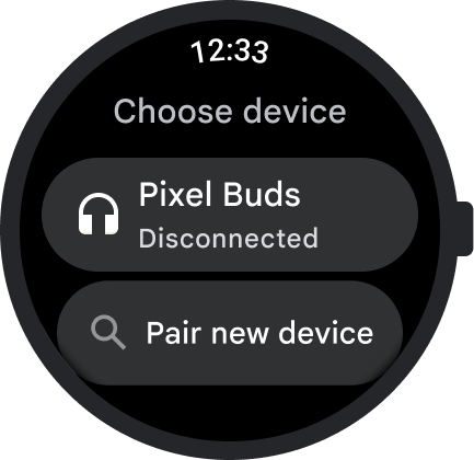 Tocar música no relógio não é uma experiência muito legal. Em vez disso, quando as pessoas iniciarem uma sessão de mídia, peça que elas selecionem um dispositivo de saída mais adequado, como fones de ouvido.