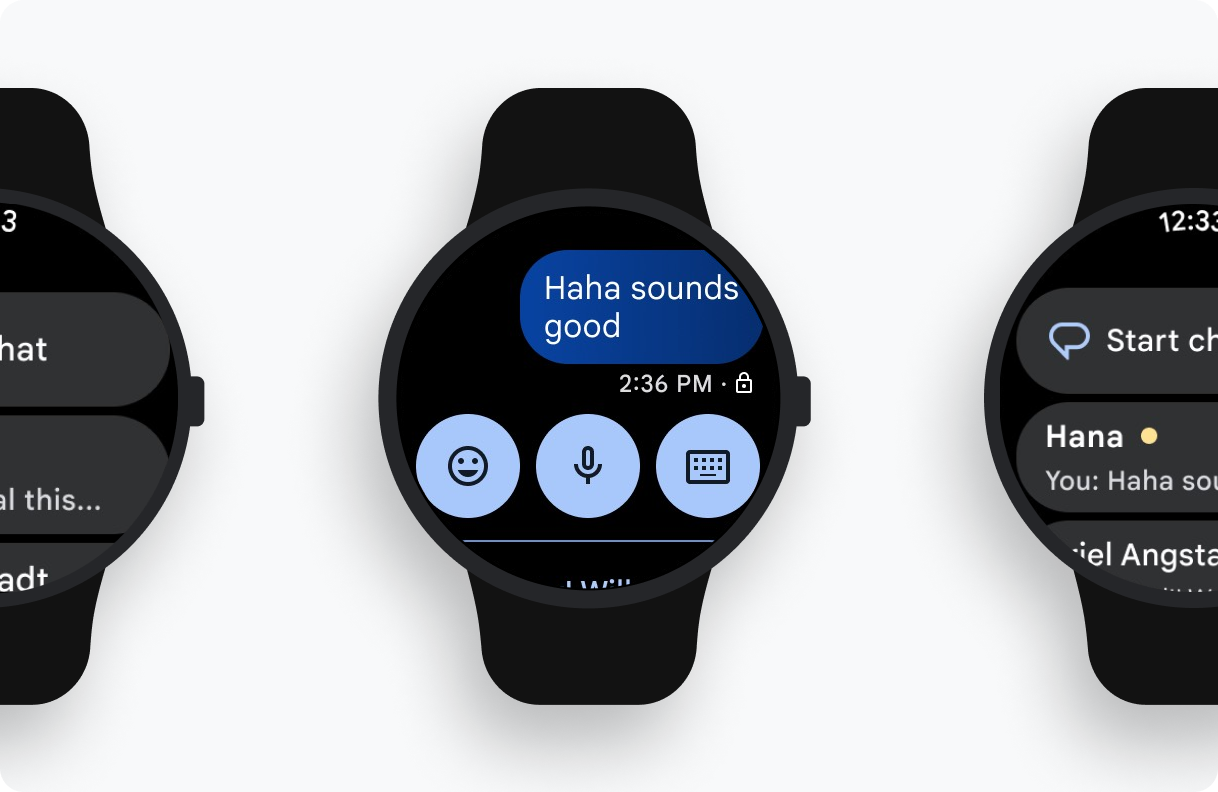 Orang senang berkomunikasi dalam berbagai format, oleh karena itu Wear OS menawarkan mekanisme input yang berbeda kepada Anda, seperti emoji, suara, dan teks.