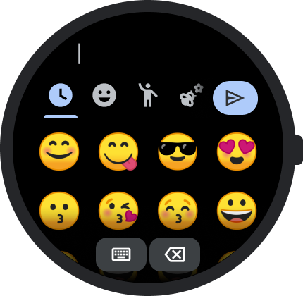 使用者喜歡以多種格式溝通,因此 Wear OS 可讓您提供各種輸入機制,例如表情符號、語音和文字。